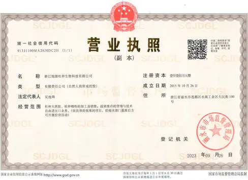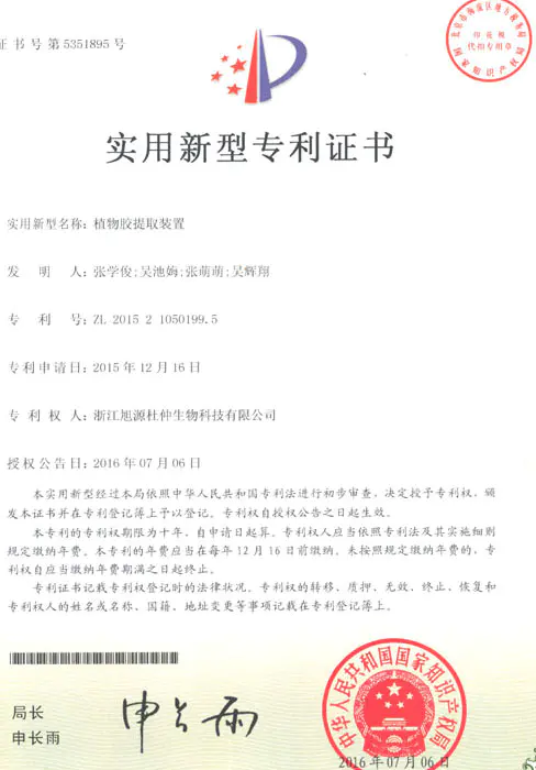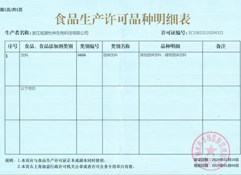 החברה שלנו היא המפעל הראשון לייצור מזון Eucommia בסין שמקבל את הסמכת המזון של Eucommia
